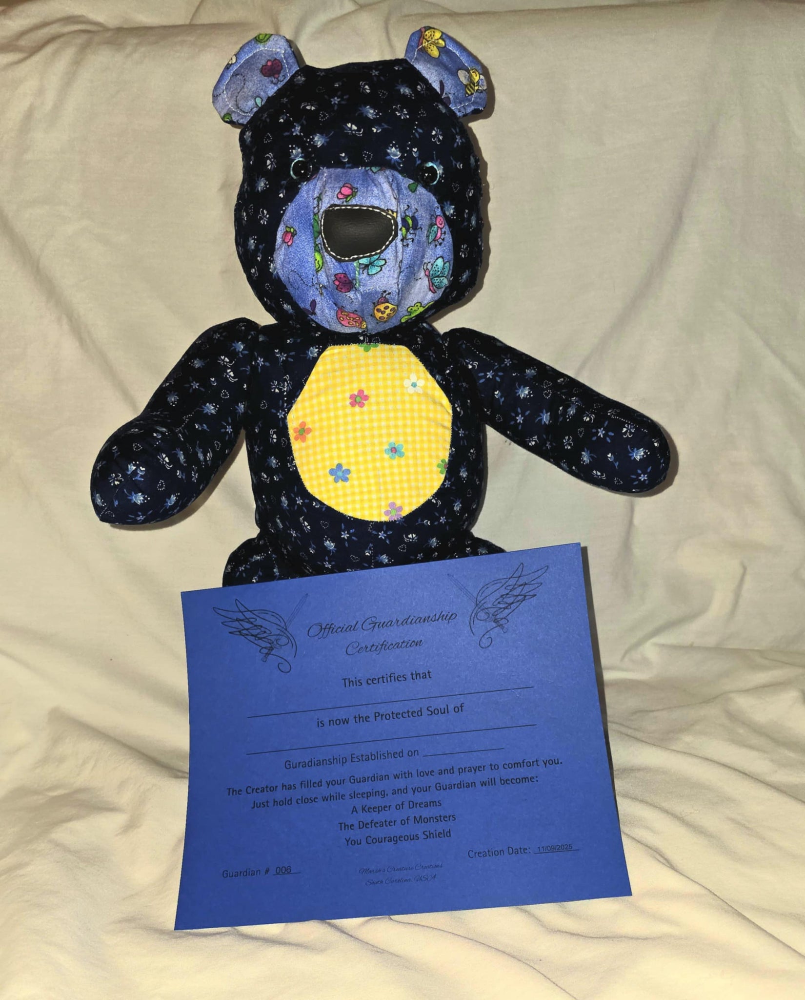 I was made for you with love and devotion. Inside me is a protection prayer – based upon Deuteronomy 33:12. To further my purpose my creator recited the prayer as she sewed me, instilling God’s peace and love within my stuffing.